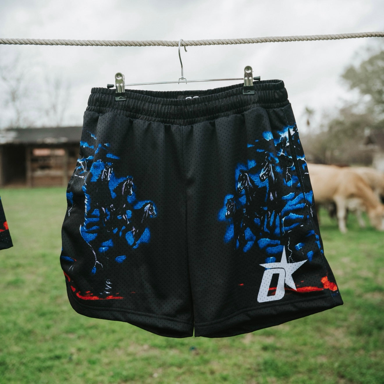 Black Mesh Shorts With Graphic On The Side